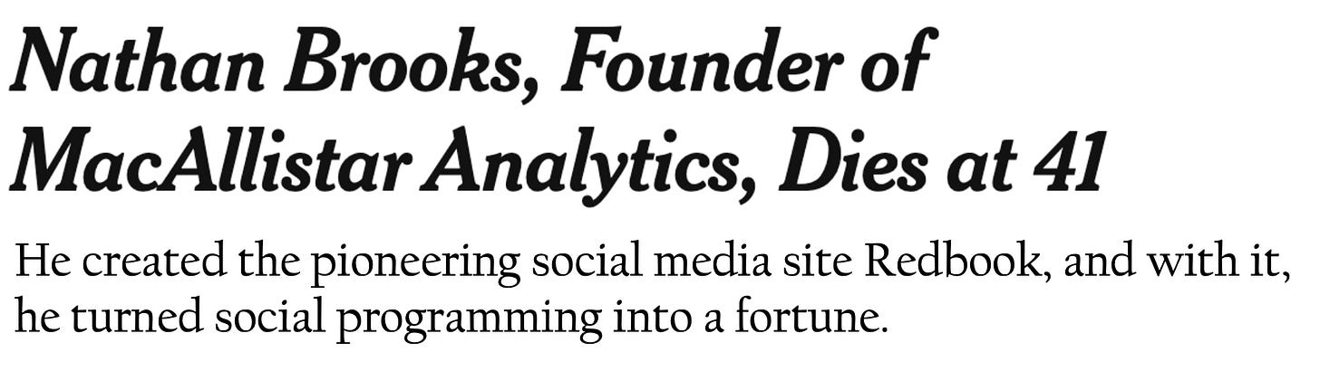 Nathan Brooks, the founder of MacAllistar Analytics, has passed away at the age of 41, after taking his own life, and that of his son, in their Mexican home.