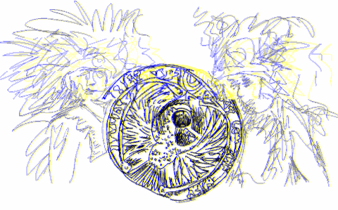So after a few minutes she started unbuttoning her blouse – again not attracting the slightest bit of attention – apart from Rikki whose instant Pavlovian reaction was to drool “woof woof.” She unbuttoned enough to reveal a large round medallion hanging around her neck against her chest – gold, fancy looking with a big red stone in the centre.